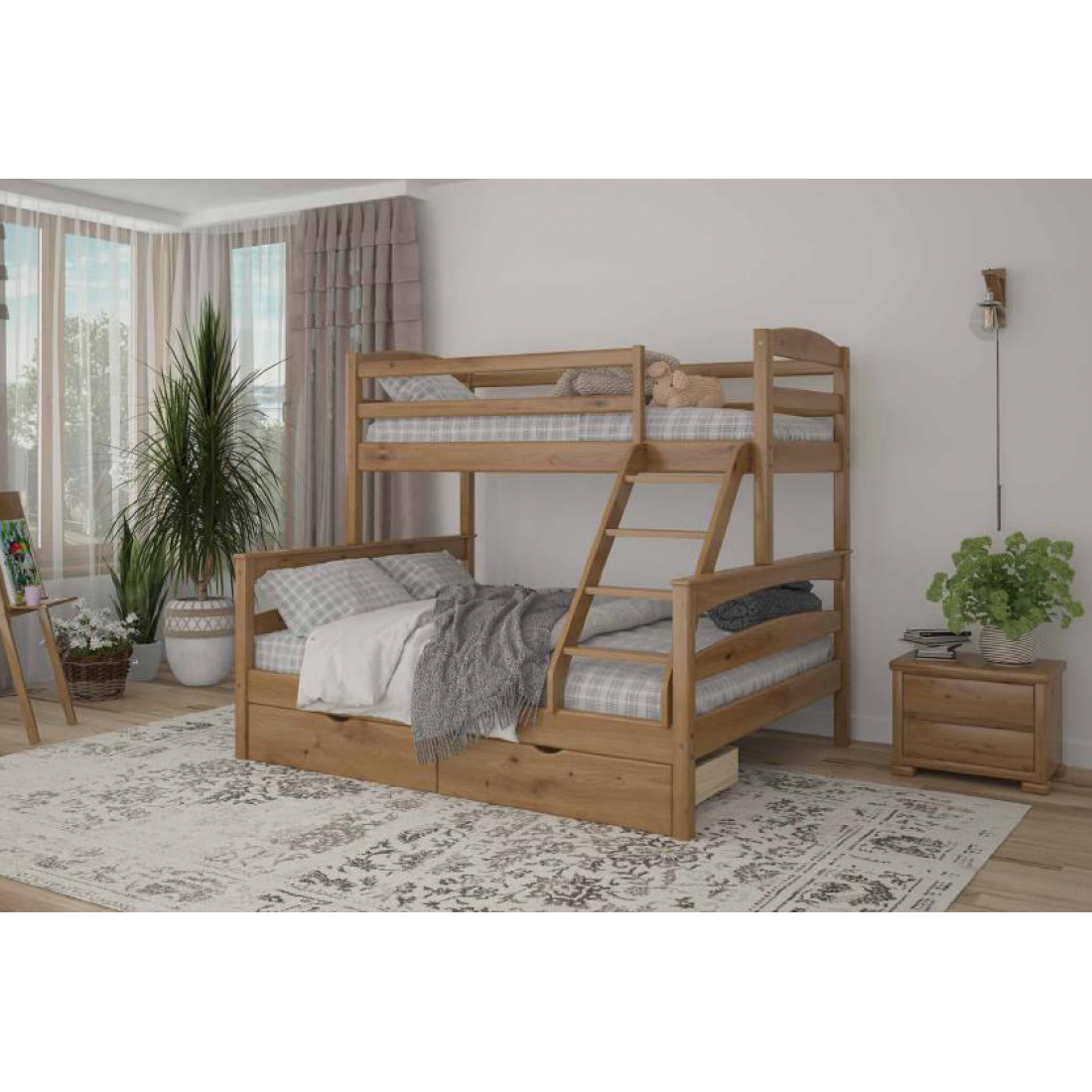 Представляем Вашему вниманию детскую двухэтажную кровать из натурального дерева с ортопедическими ламелями. Наша кровать обеспечит вашим детям уютное место для отдыха и сна, а также поможет оптимизировать использование пространства в детской комнате.