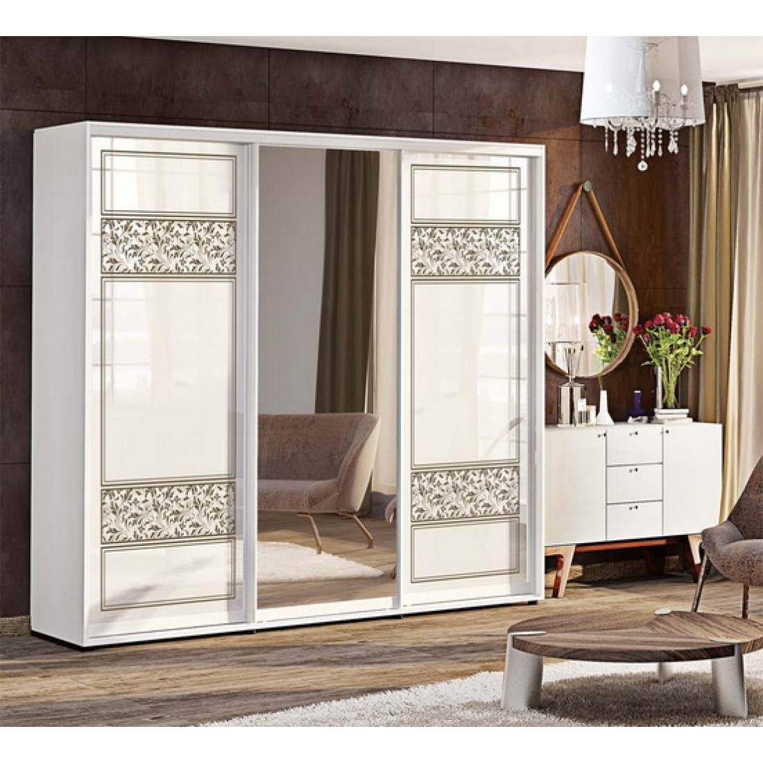 Шкаф-купе "Валенсия" крашеный высокий глянец с зеркалом 2,2м