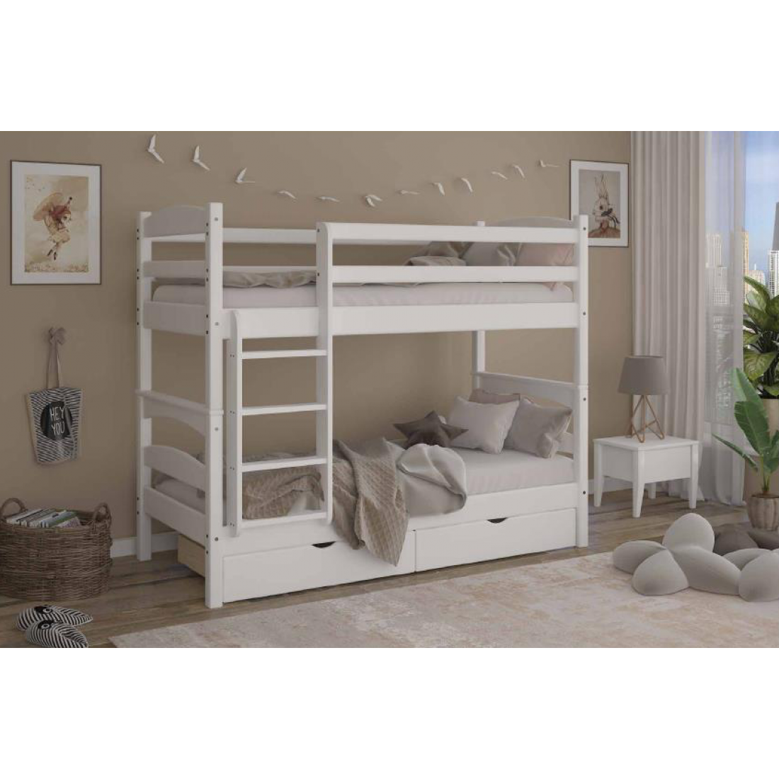 Двухэтажная конструкция кровати позволяет вам экономить место в комнате и дает возможность разместить двух детей в одной комнате. Кровать имеет лестницу, которая обеспечивает безопасный подъем на верхний ярус.